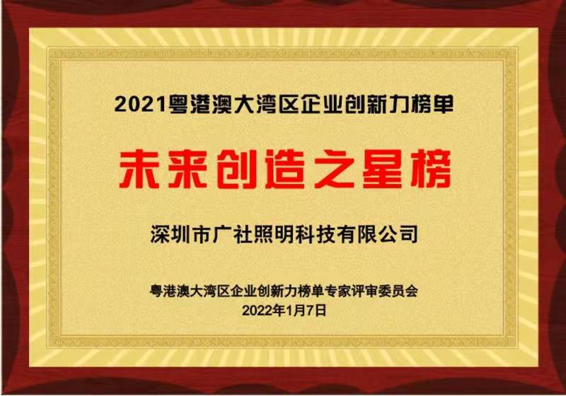 2022 Awarded "2021 Guangdong, Hong Kong and Macao Greater Bay Area Enterprise Innovation Power List" - Future Creative Star List
